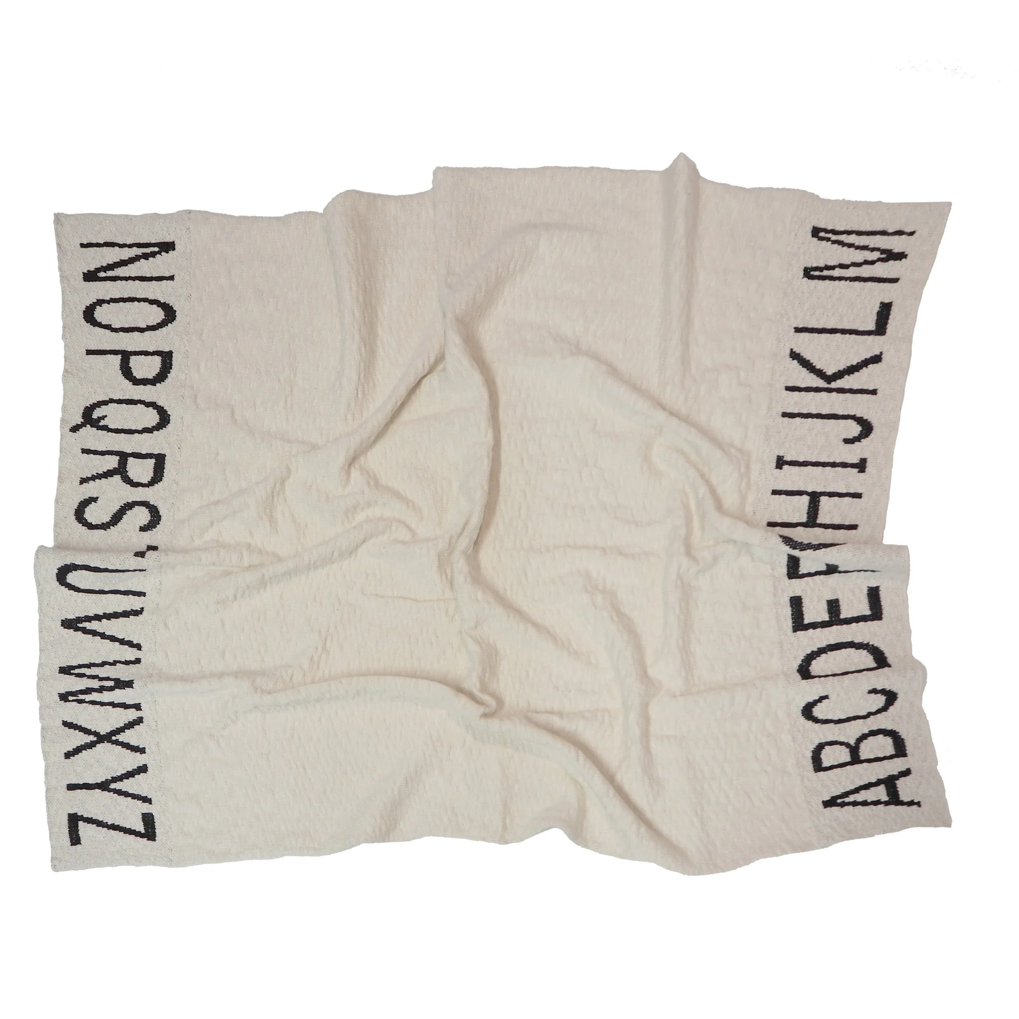 The Lorena Canals ABC baby blanket makes a great gift idea for someone who has just had a new baby. This washable knitted cotton blanket comes in a natural color with the letters of the alphabet in black at both ends. The beige color of the cotton is the real color of natural cotton and 100% natural dye has been used for the black letters.
