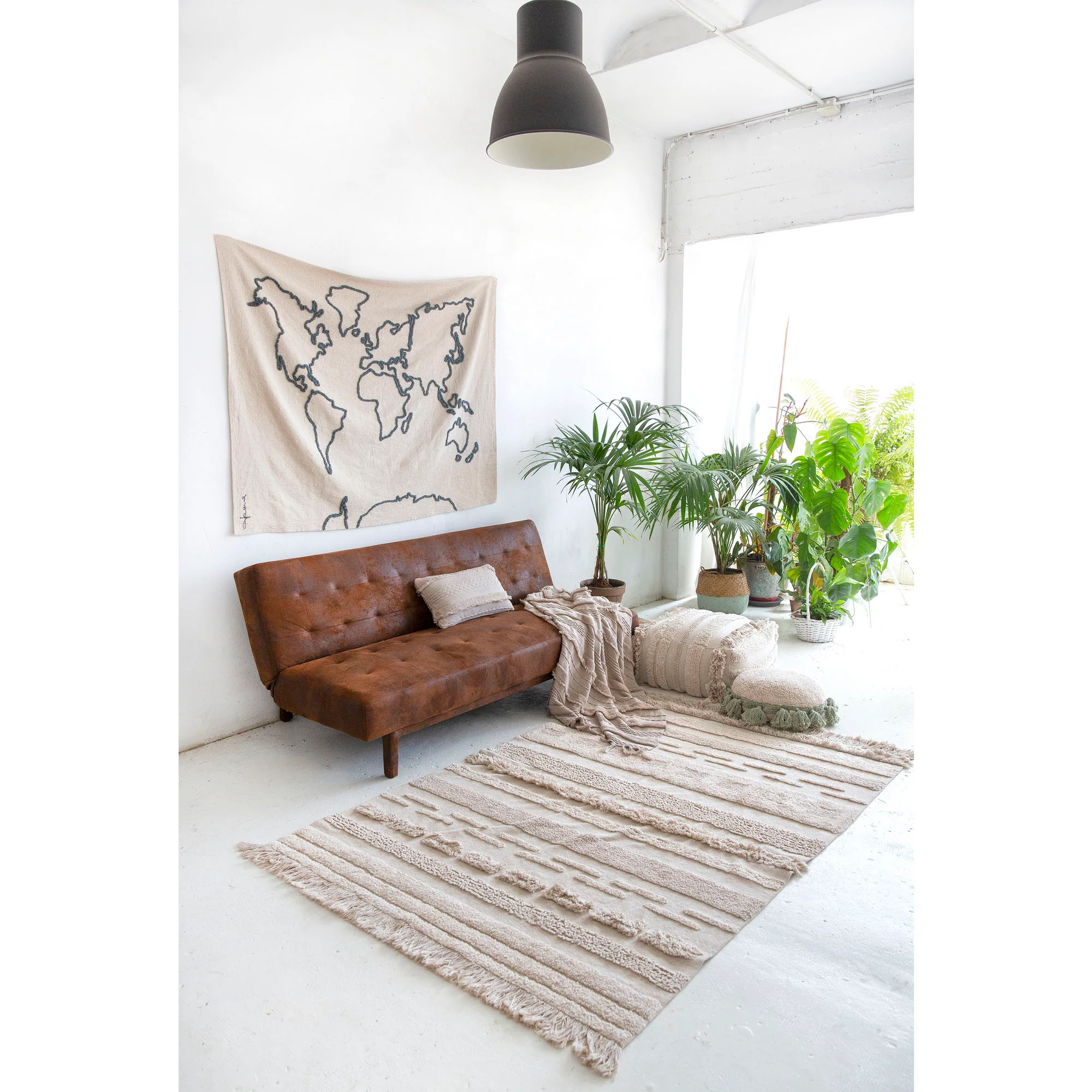 Inspired by endless skies, deep oceans and incredible mountain peaks, Lorena Canals new home designs handmade from different techniques and vibrant colors bring the uniqueness to their Early Hours collection. Good for both floor and wall, these rugs will definitely add a chic bohemian look to any room. The mixture of different sewing techniques provides these designs of several textures and thicknesses, featuring stripes and fringes on a canvas simulating the sky, clouds and the early air.